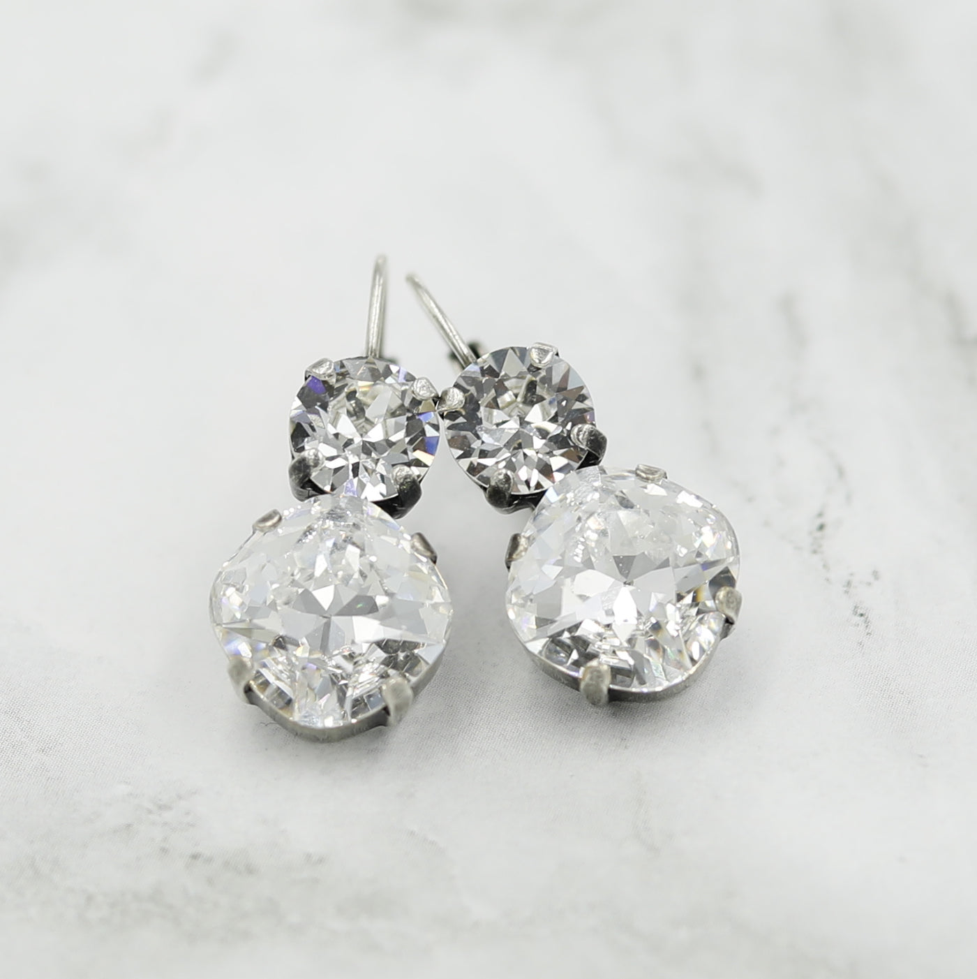 The complement to our Laura Bracelet and coordinating piece to the Sandra Necklace, this earring is a go-to for lots of our fans. The top is an 8mm solitaire stone, and the bottom is a 12mm cushion-cut.