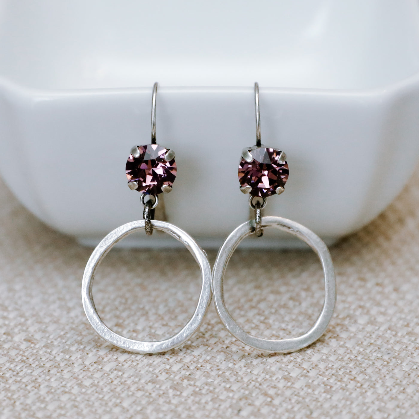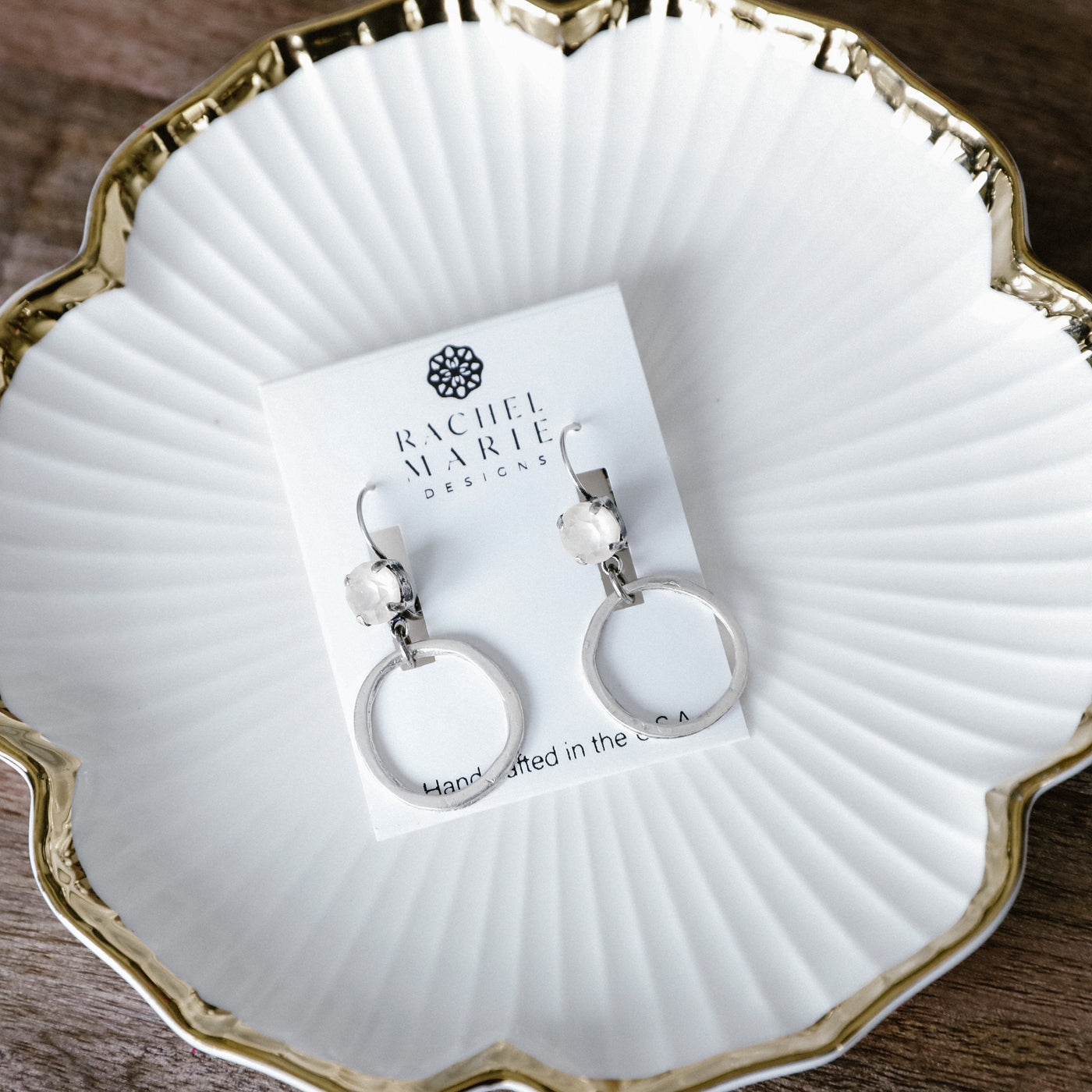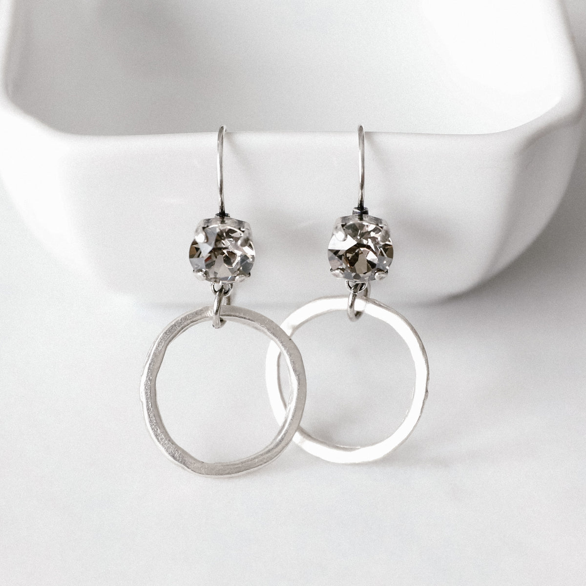 The Laurel Earring features a sophisticated hoop drop design for versatile wear. Oxidized silver finish over brass base Lever back closure...