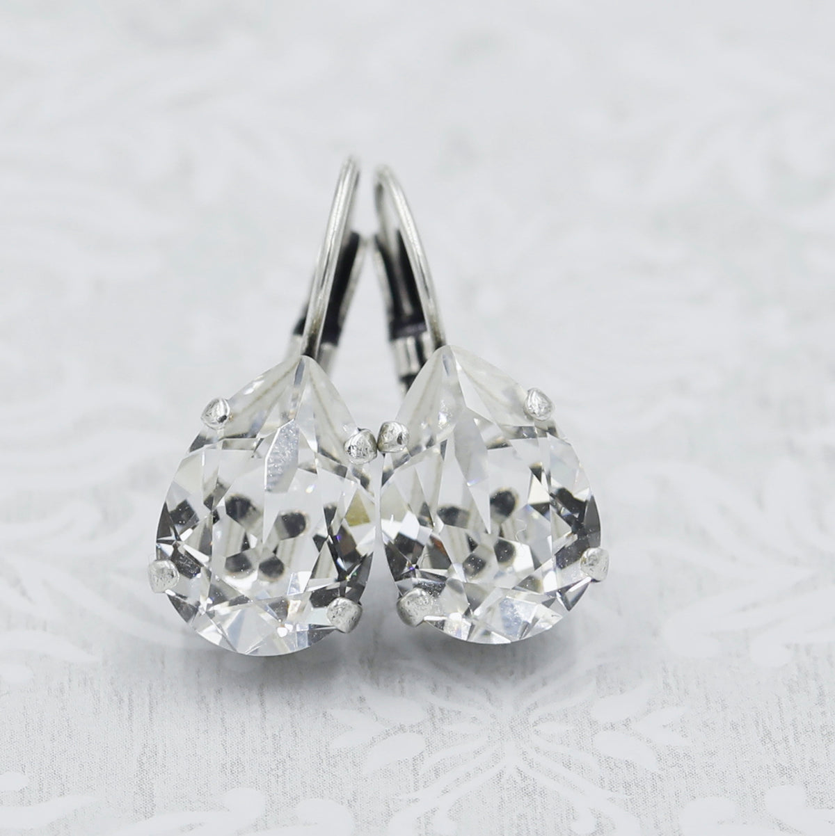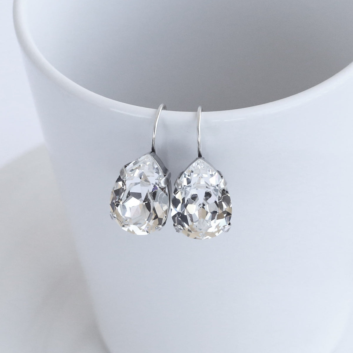 14mm Drop Earring with pear shaped Swarovski Stone.