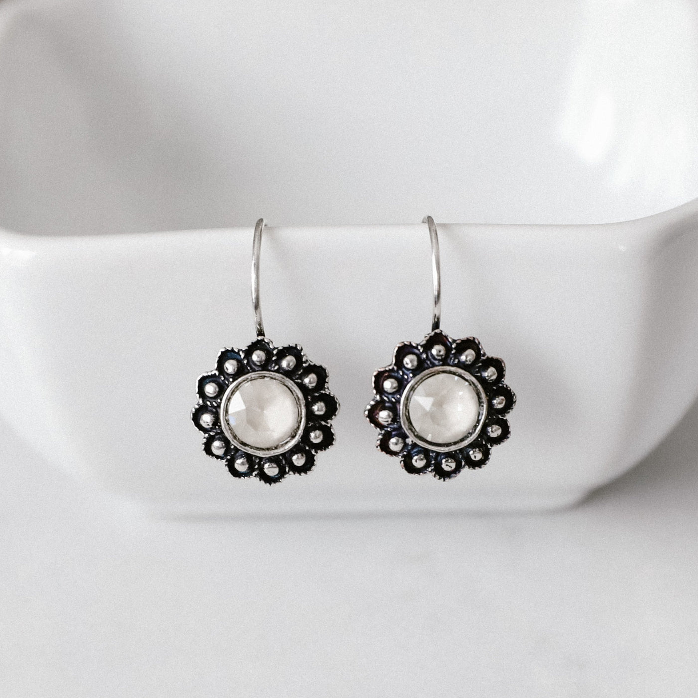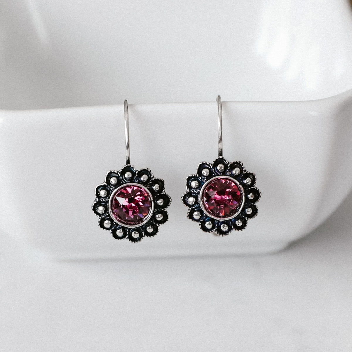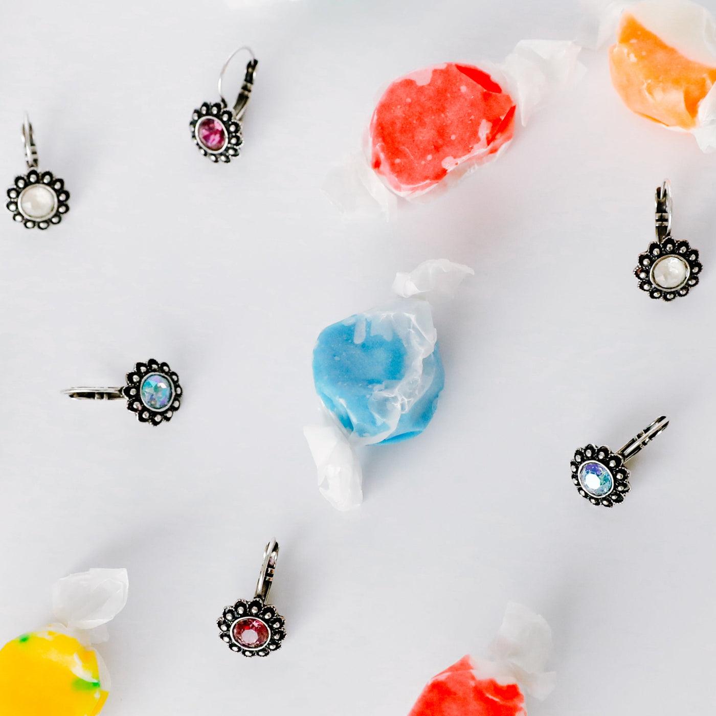 Get ready to bloom with these playful flower-shaped earrings featuring a sparkling crystal center.