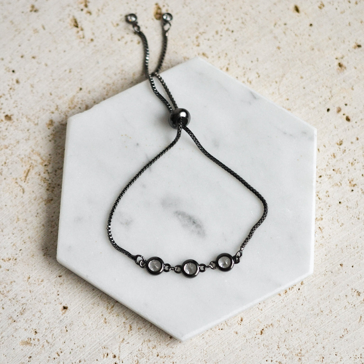This delicate bracelet features adjustable sizing and delicate CZ accents. It's versatile for both everyday wear and layering, making it a great addition to any outfit.