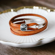 This leather wrap bracelet features a 10mm cushion cut stone - perfect for adding a touch of elegance and playfulness to your accessory game. Fits up to a 7.5" wrist comfortably.