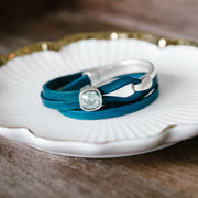 This leather wrap bracelet features a 10mm cushion cut stone - perfect for adding a touch of elegance and playfulness to your accessory game. Fits up to a 7.5" wrist comfortably.