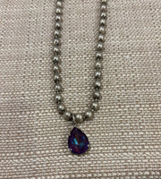 This fun ball chain necklace features a sparkling pear-shaped crystal pendant for a touch of playful elegance.