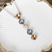 This necklace boasts five stunning stones, including a beautiful agate centerpiece. Wear with your favorite V-neck tee, scoop neck tank...
