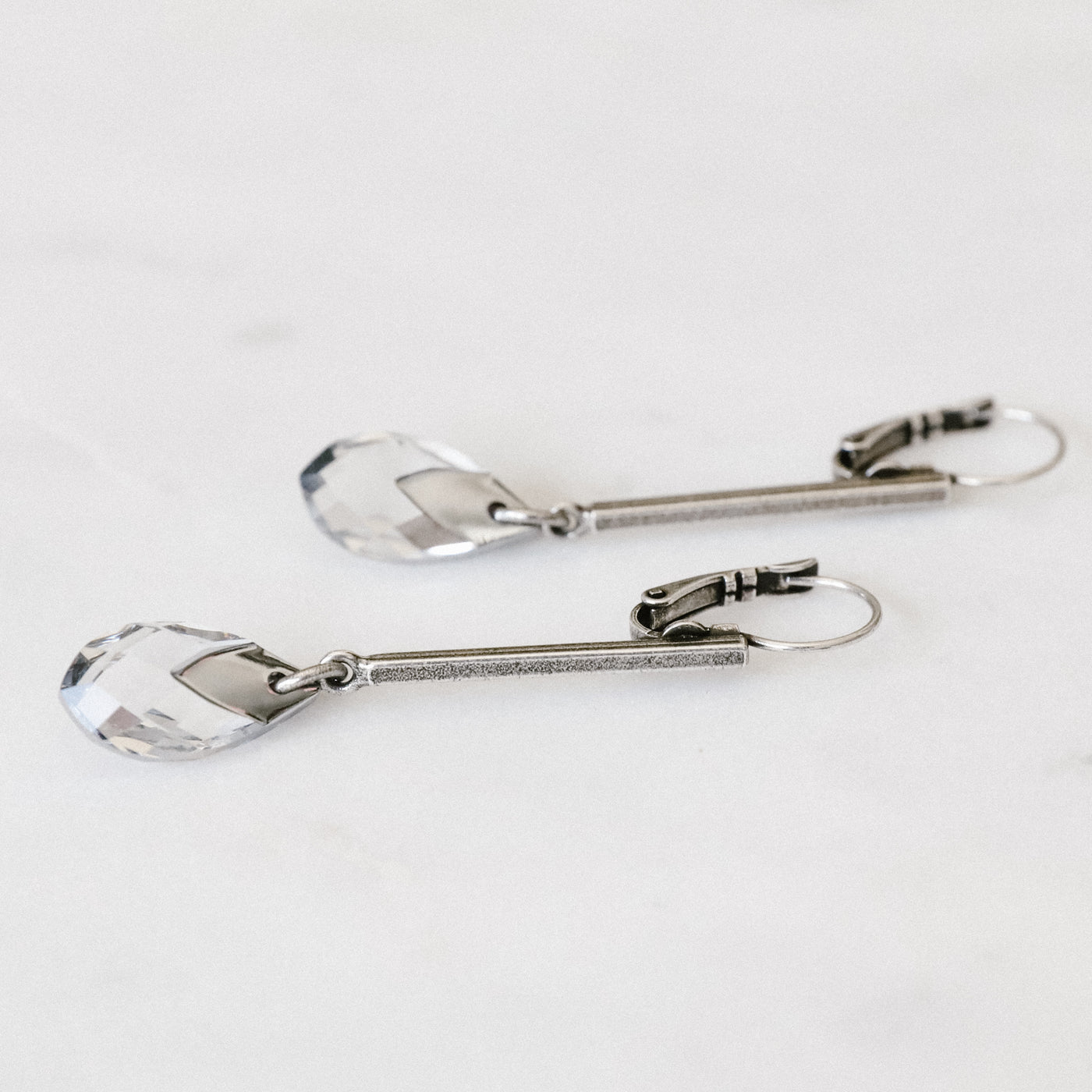 Dazzle your ears with these playful Empire Earrings! A sleek dangling bar creates movement while the sparkling crystal at the bottom catches light with every turn of your head. Perfect for adding a touch of fun to any outfit!