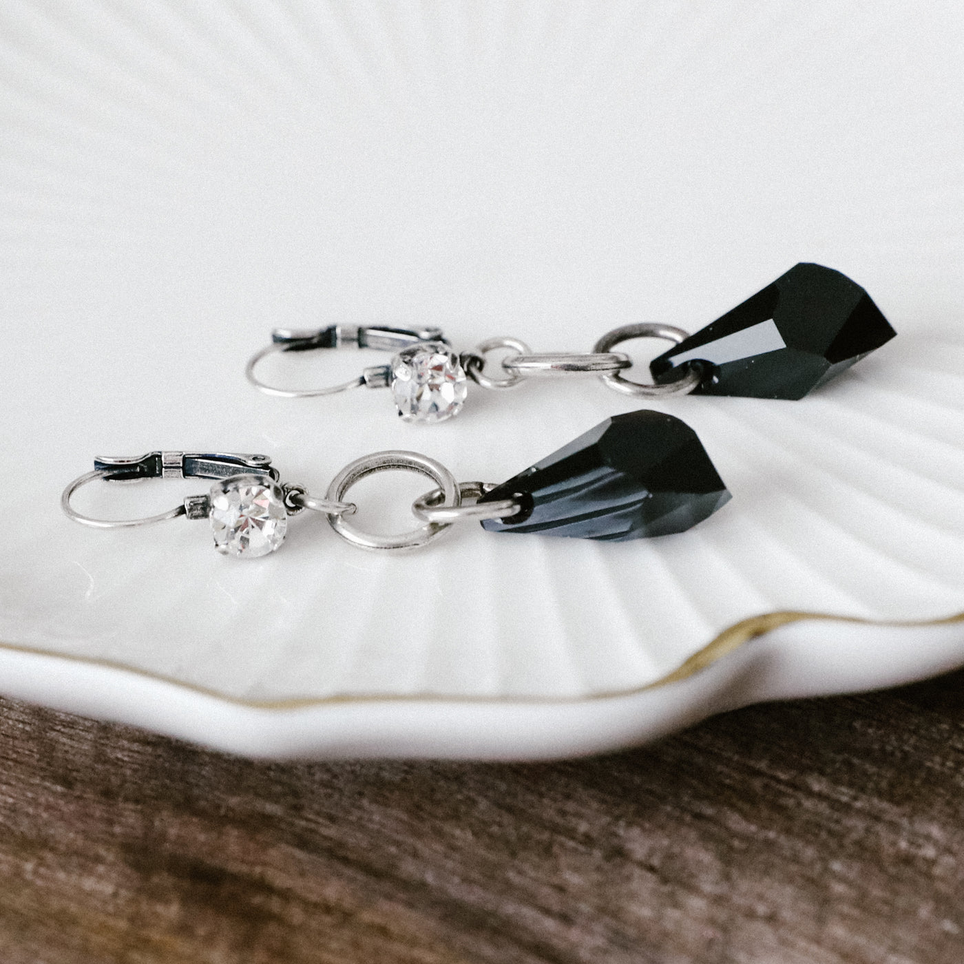 Elegant earrings featuring a striking crystal drop. Its leverback design offers both comfort and convenience, making it ideal for everyday wear.