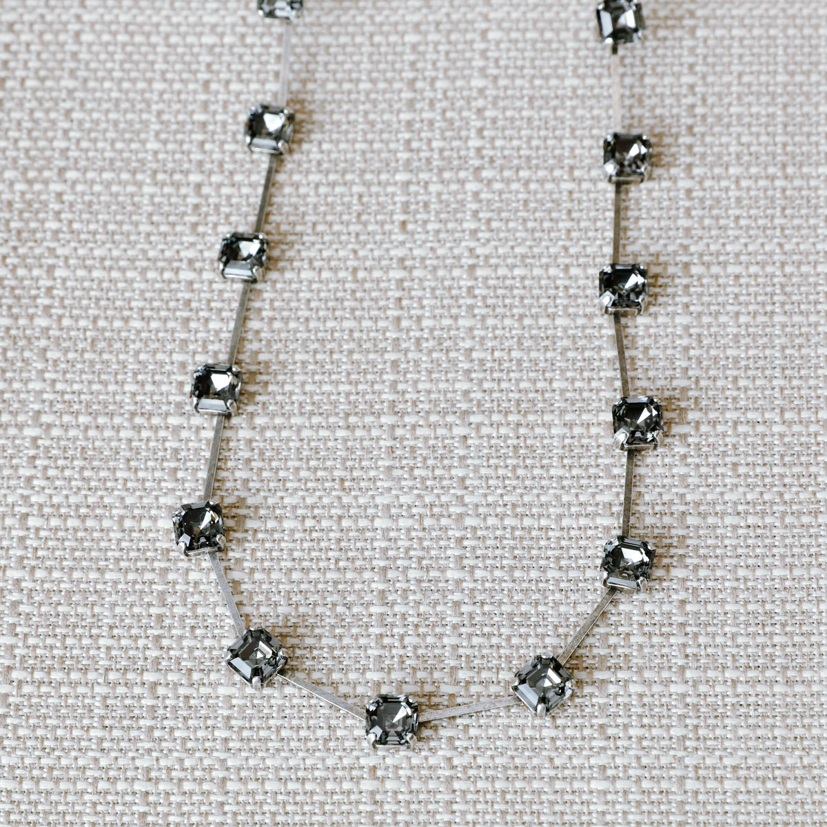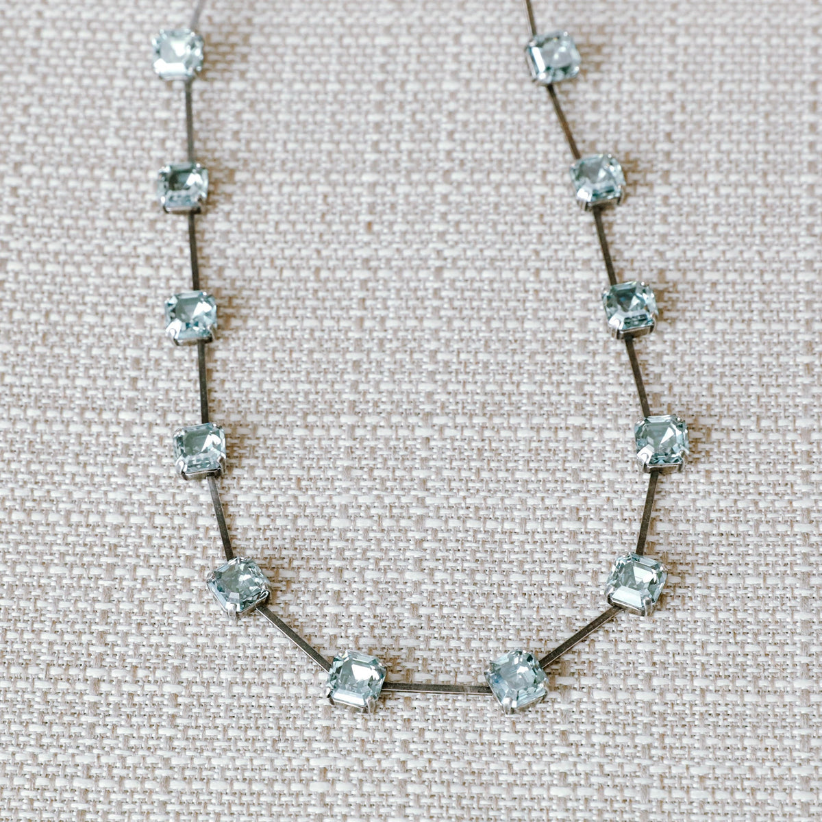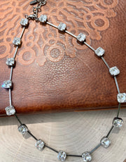 Imperial stone crystal necklace with extender. Each stone sits in almost an allusion type setting with a bendable necklace base.