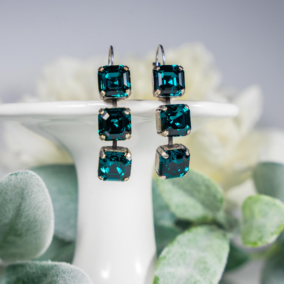Imperial drop earrings that are just under 2”. Antique silver finish.