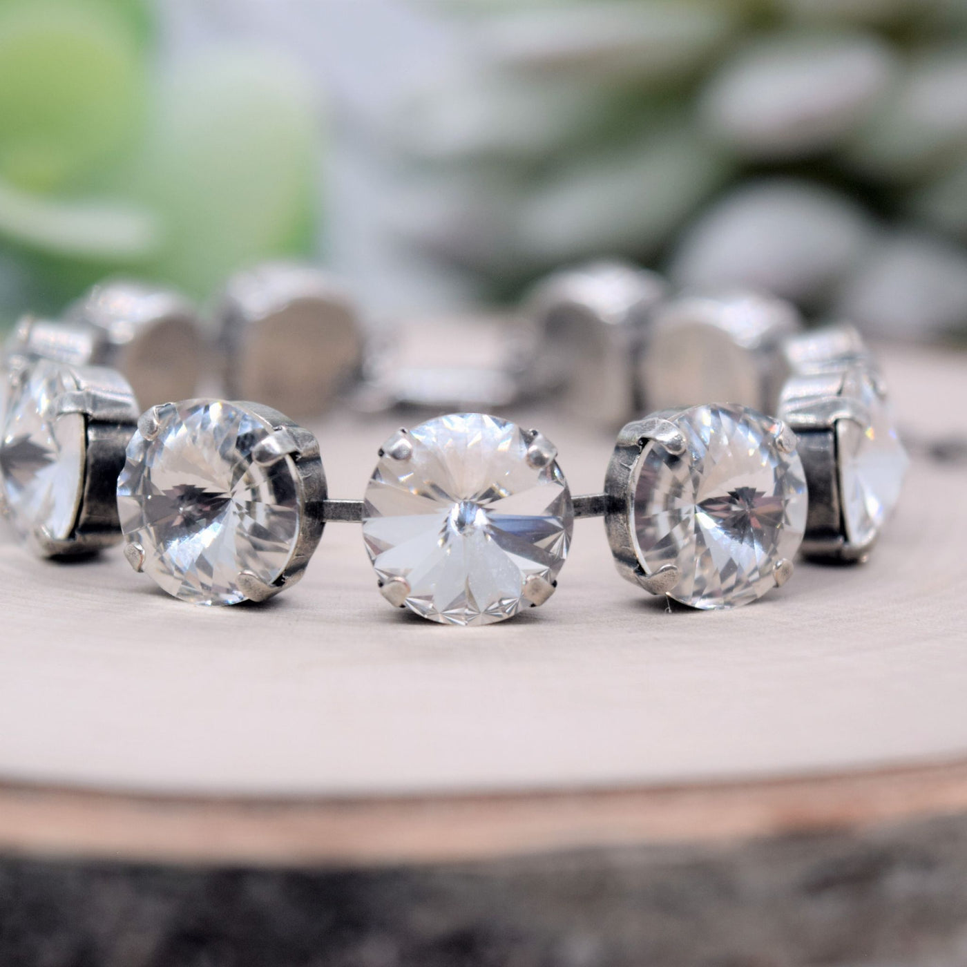 Jaden was one of the first bracelets that we offered in our lineup. 12mm stones lined up for a total length of 7" with an extender. We offer this stunning bracelet in a variety of colors and in seasonal palettes. Stack or wear solo.