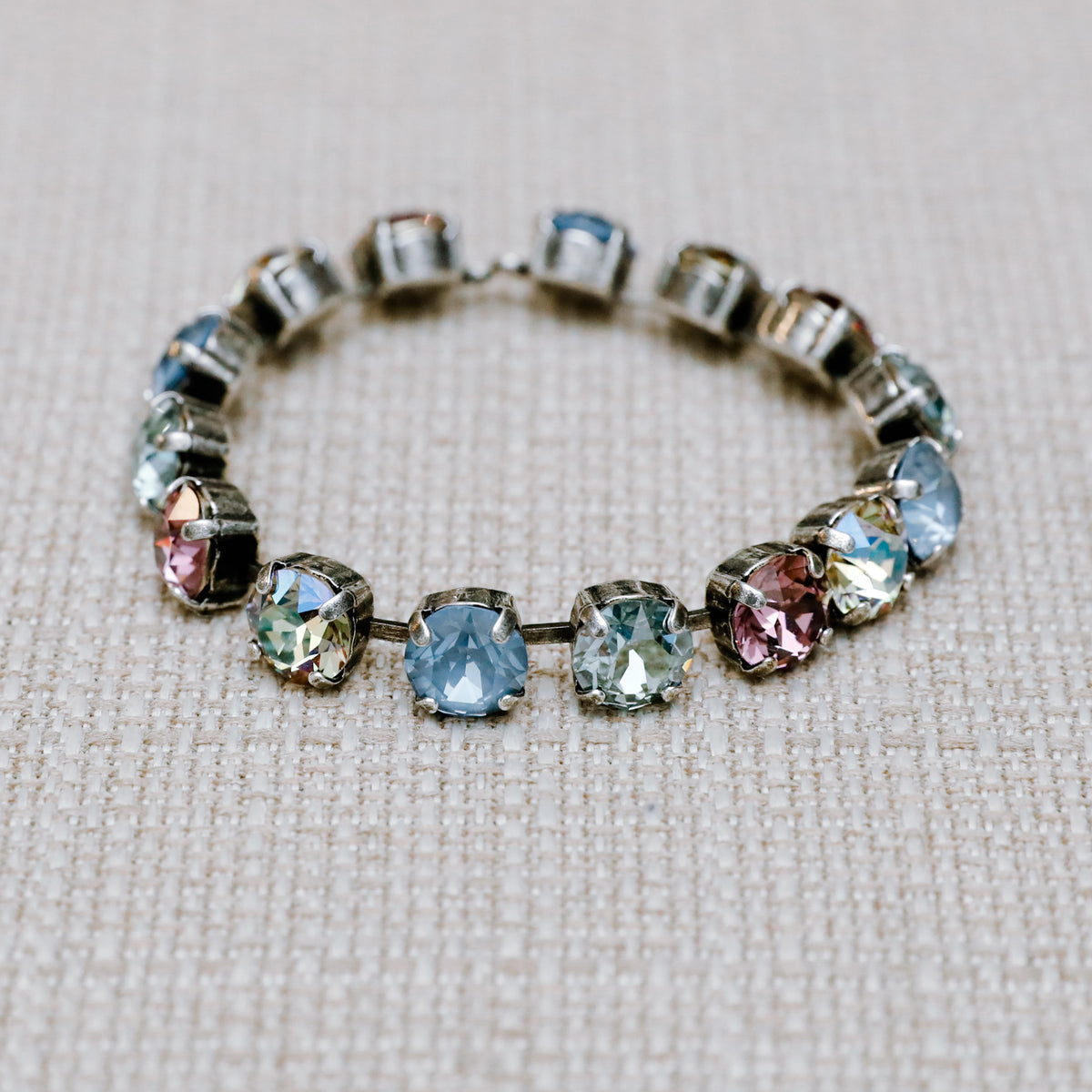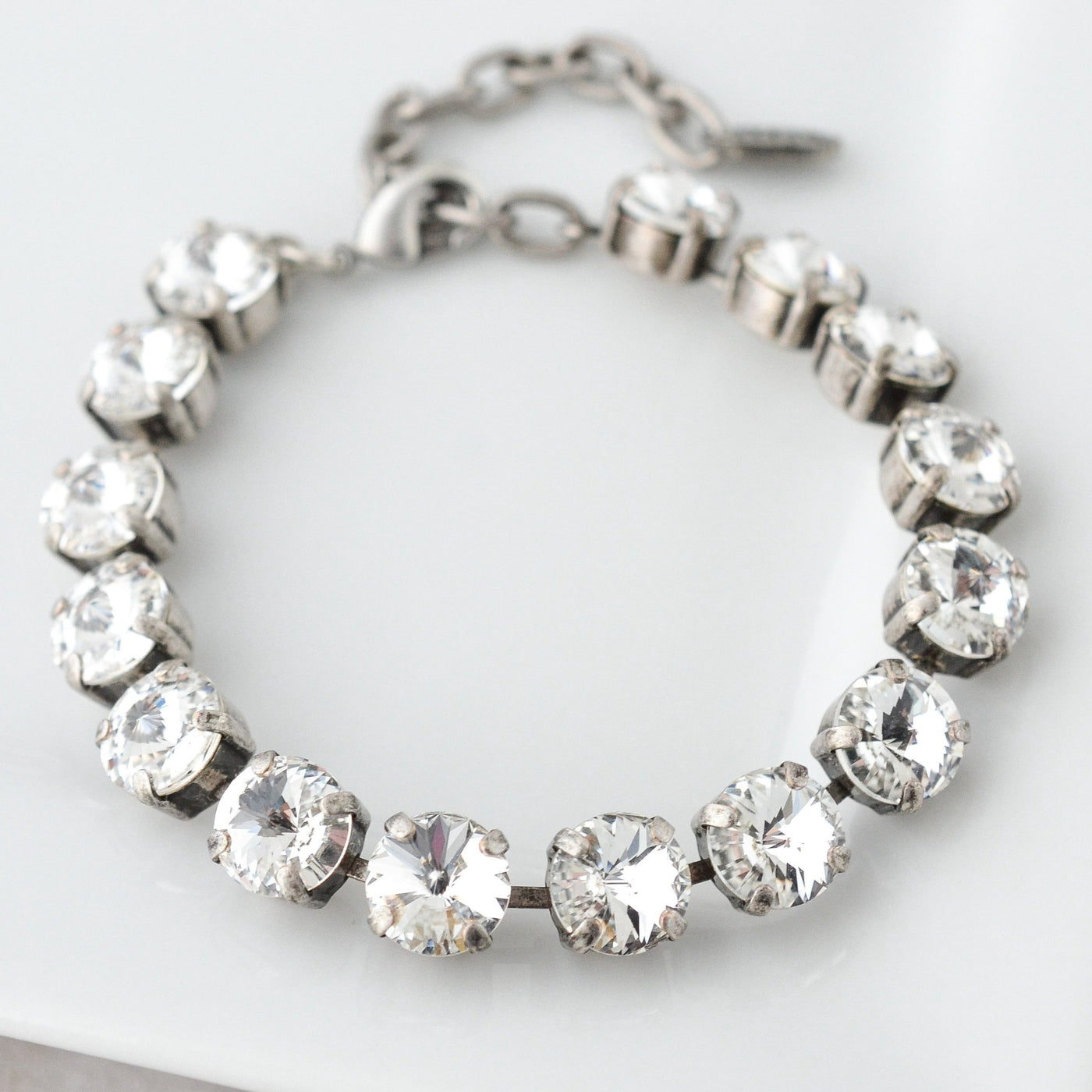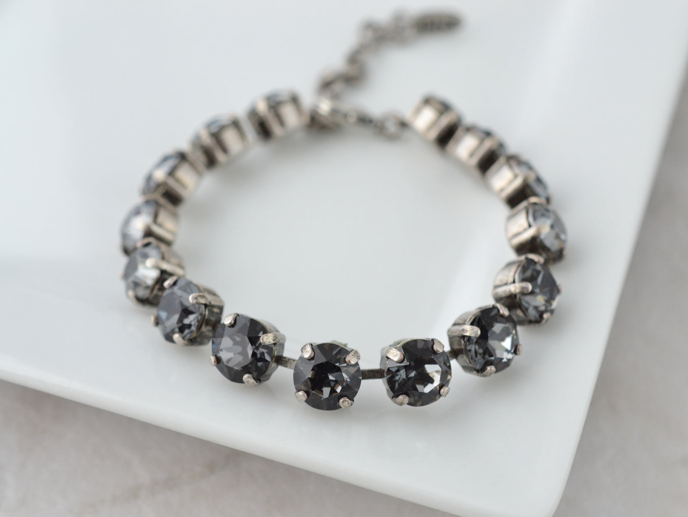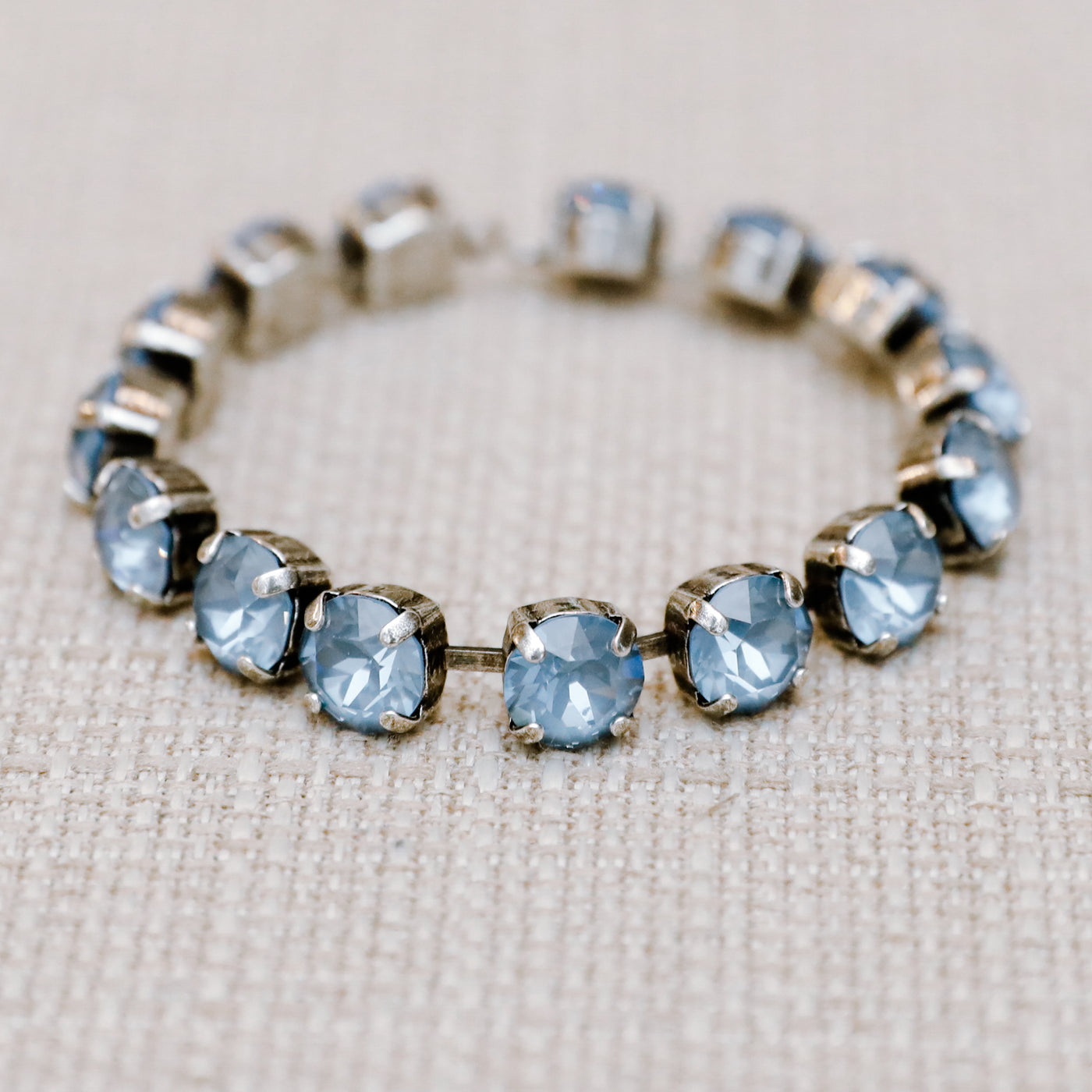 Jess is a crystal solitaire tennis bracelet. The size is 8mm so about 1 carat. We love styling our Jess bracelets in a stack of 3 or adding another style in the middle of two bracelets.