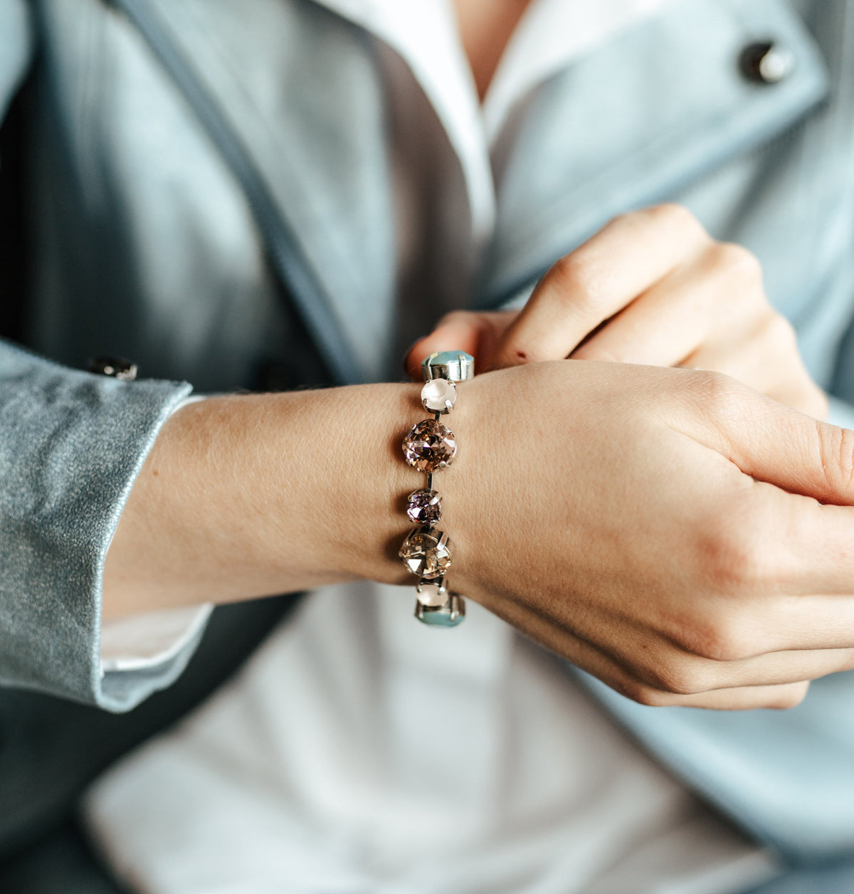 This playful arm candy combines dazzling 8mm chatons and 12mm cushion-cut crystals that catch light from every angle. The Laura Bracelet adds just the right amount of sparkle to make your wrist pop with personality!
