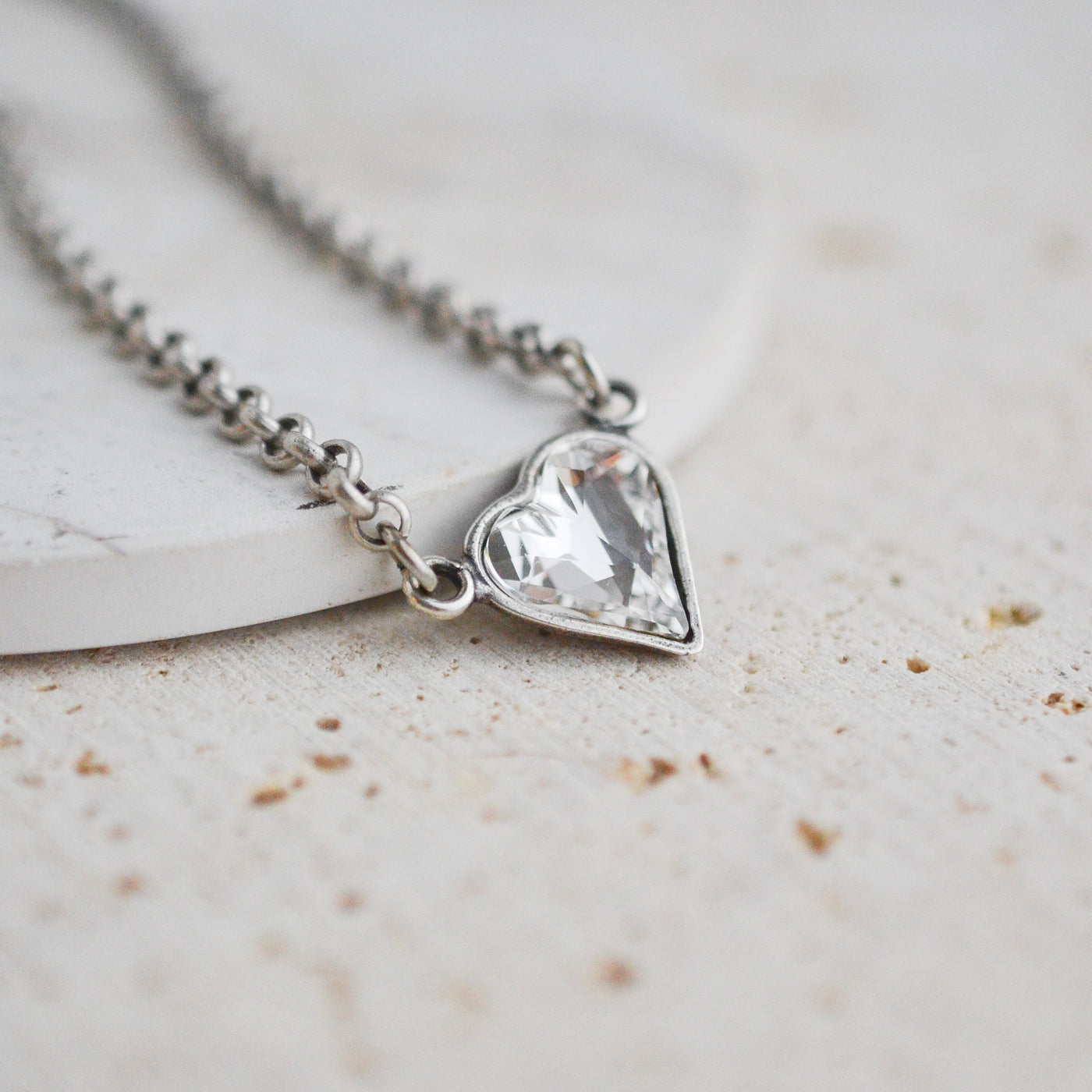 Antique Silver Heart Pendant Necklace 16" with a 2" extender