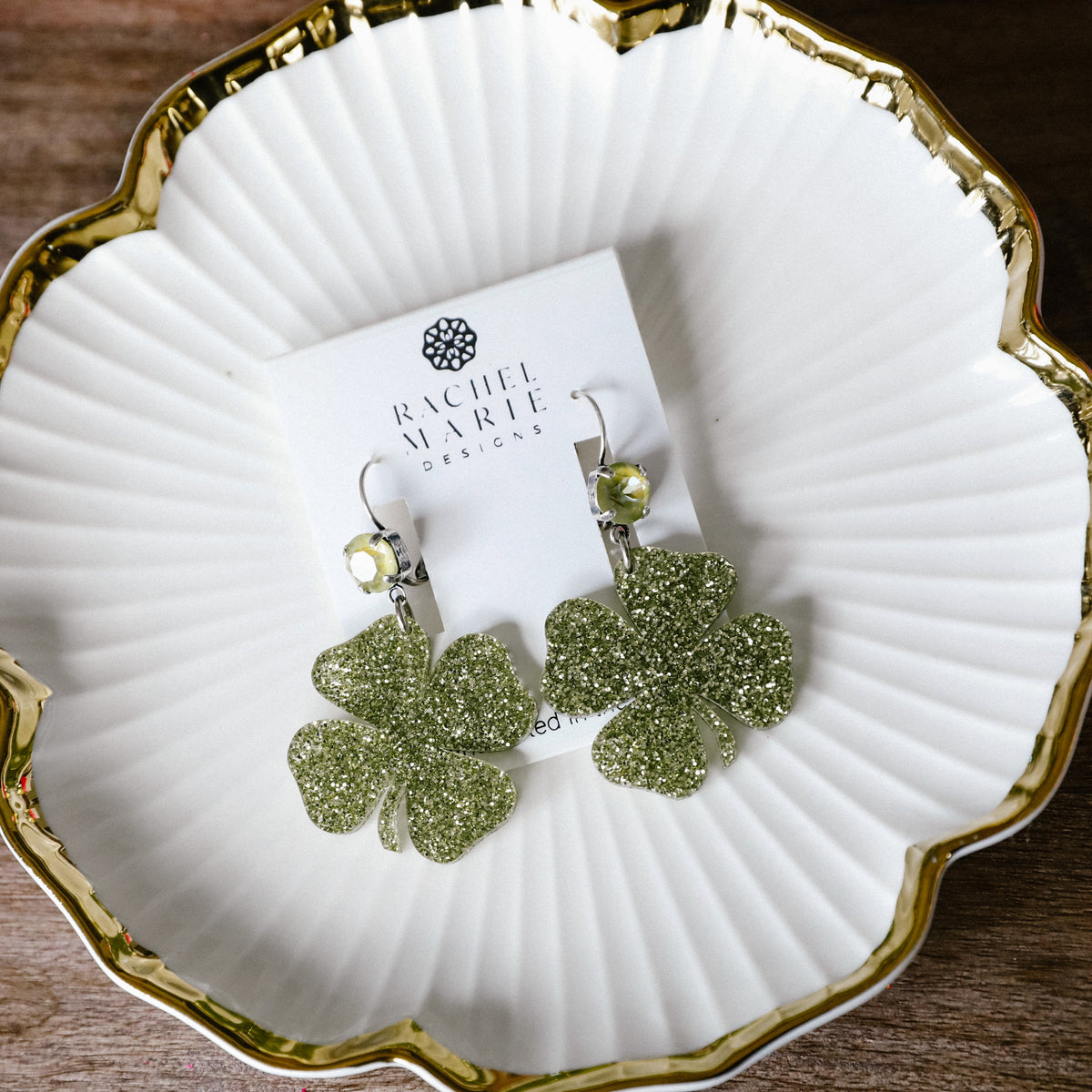 Sprinkle some sparkly good fortune into your day with our Lucky Clover Earrings! These playful accessories feature shimmering acrylic glitter clover pendants.