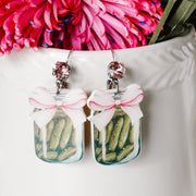 Pickle jar chic meets whimsical charm! These Matilda Earrings feature adorable acrylic drops shaped like miniature pickle jars, each topped with a cute bow. A quirky conversation starter that adds a dash of fun to any outfit.
