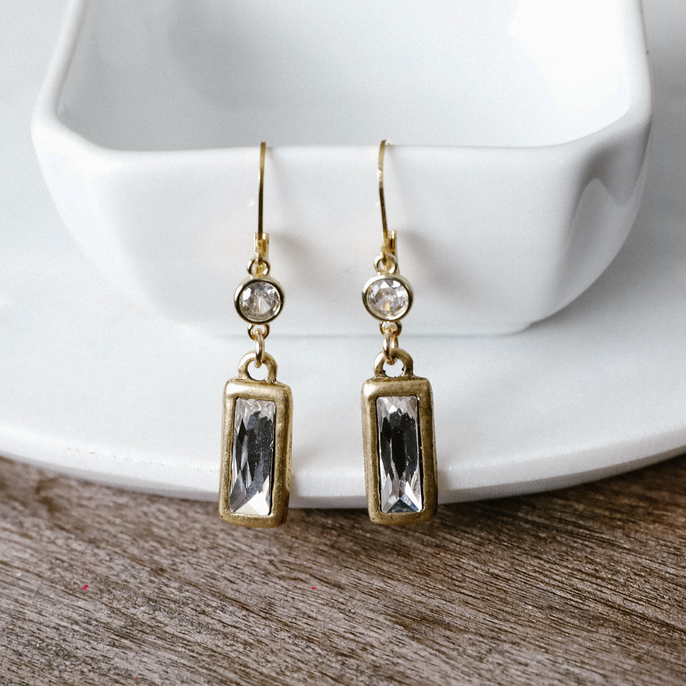 Swing into style with our NICOLETTA EARRINGS! These baguette drops dangle in a beautifully cast setting, catching eyes and compliments wherever you go. Grab them in gold or silver to match your mood and make your outfit pop with personality!