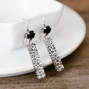 This pair of earrings features beautiful acrylic leopard print and Austrian Crystal Jet Colored stones set in an antique silver finish. Its leverback design offers both comfort and convenience, making it ideal for everyday wear.