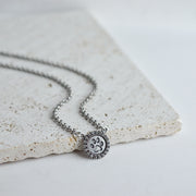 Halo Paw Pendant necklace perfect for pet lovers. Wear with your favorite V-neck tee, scoop neck tank or with a button-down (top button undone).