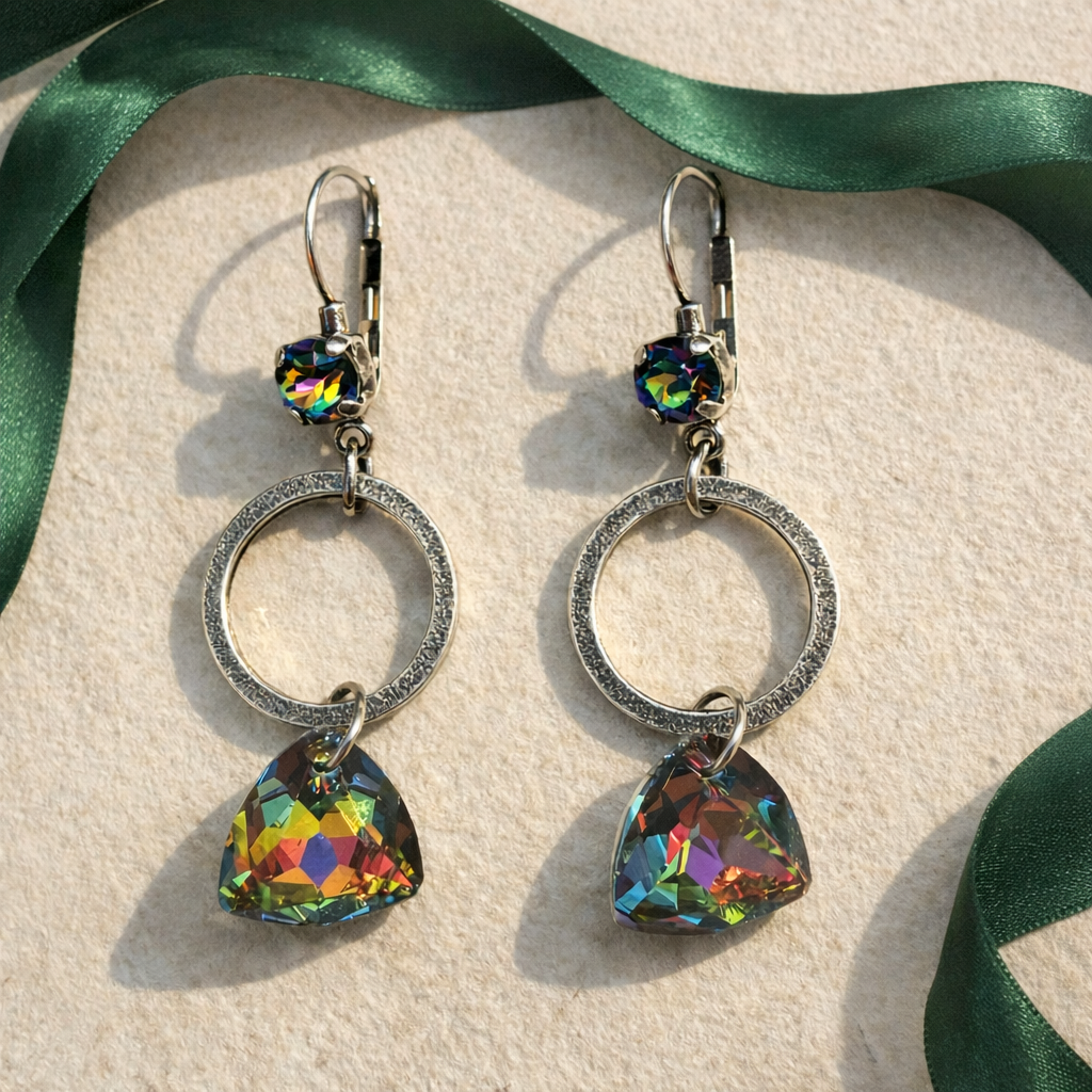These playful leverback earrings showcase a trilliant cut crystal that dangles gracefully from a chic hoop.
