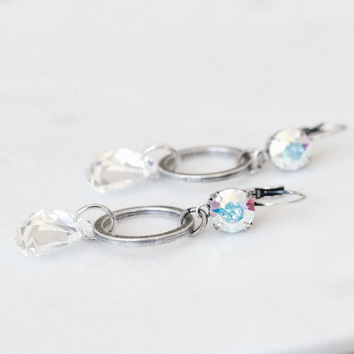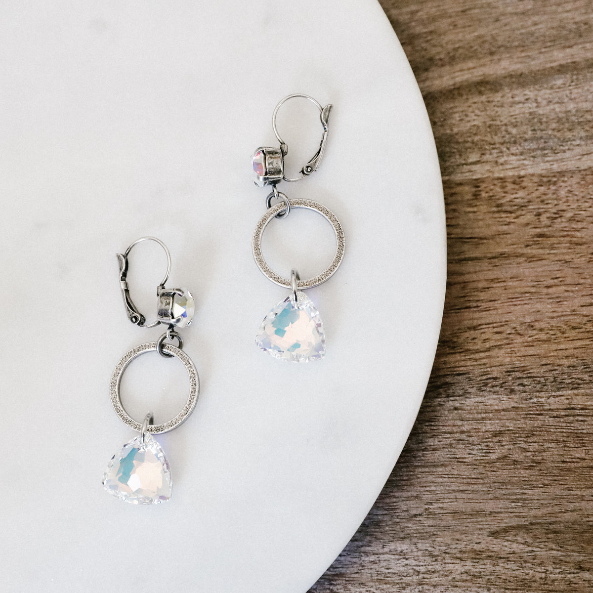 These playful leverback earrings showcase a trilliant cut crystal that dangles gracefully from a chic hoop. •Leverback Earring•6mm Crystal Elements...