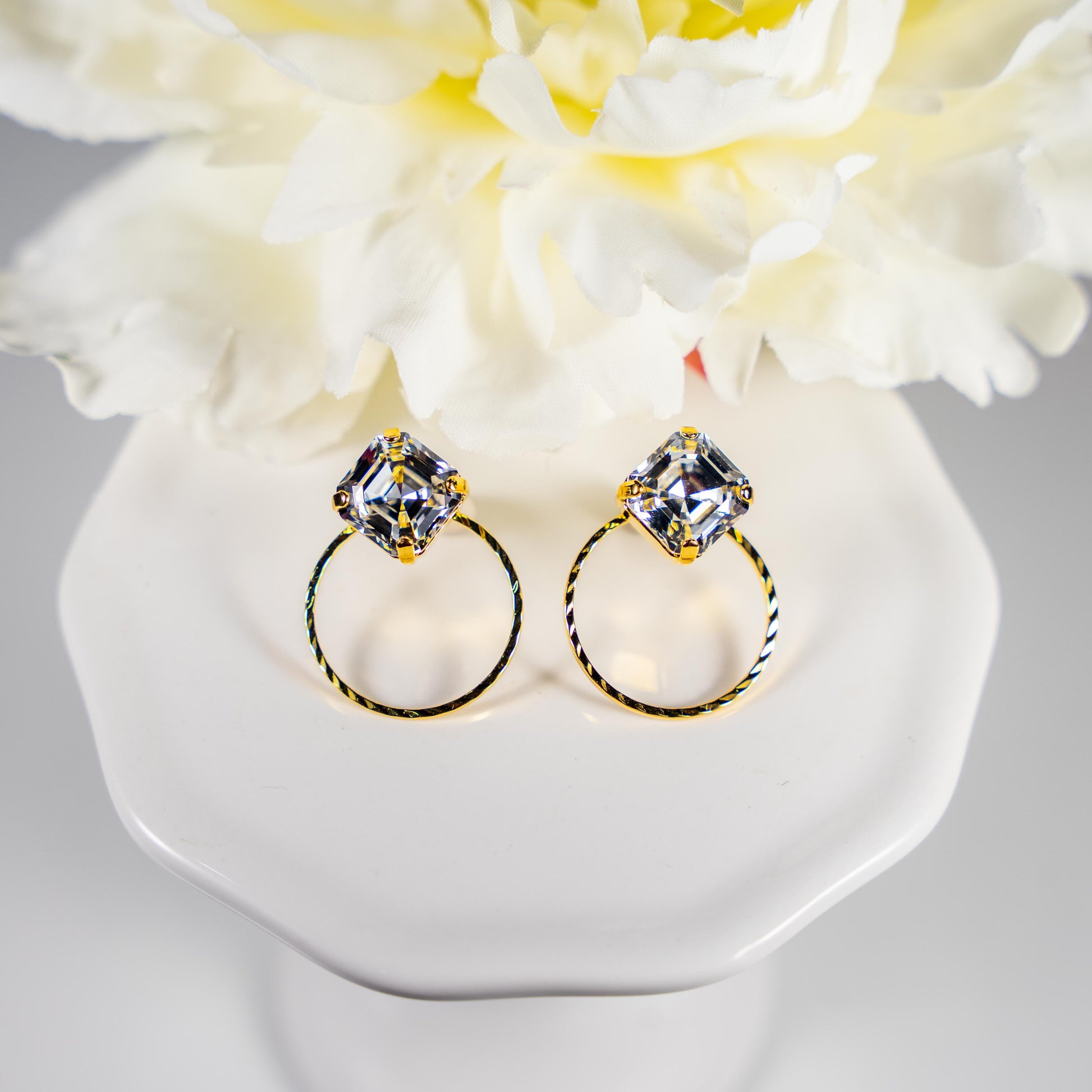 Playfully textured hoops crowned with dazzling imperial cut stones. These IMPROV earrings add a touch of spontaneous sparkle to any outfit!