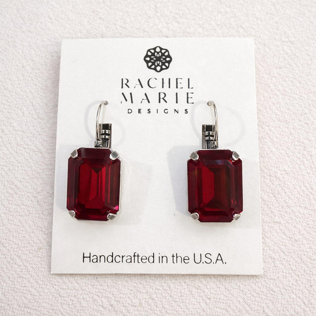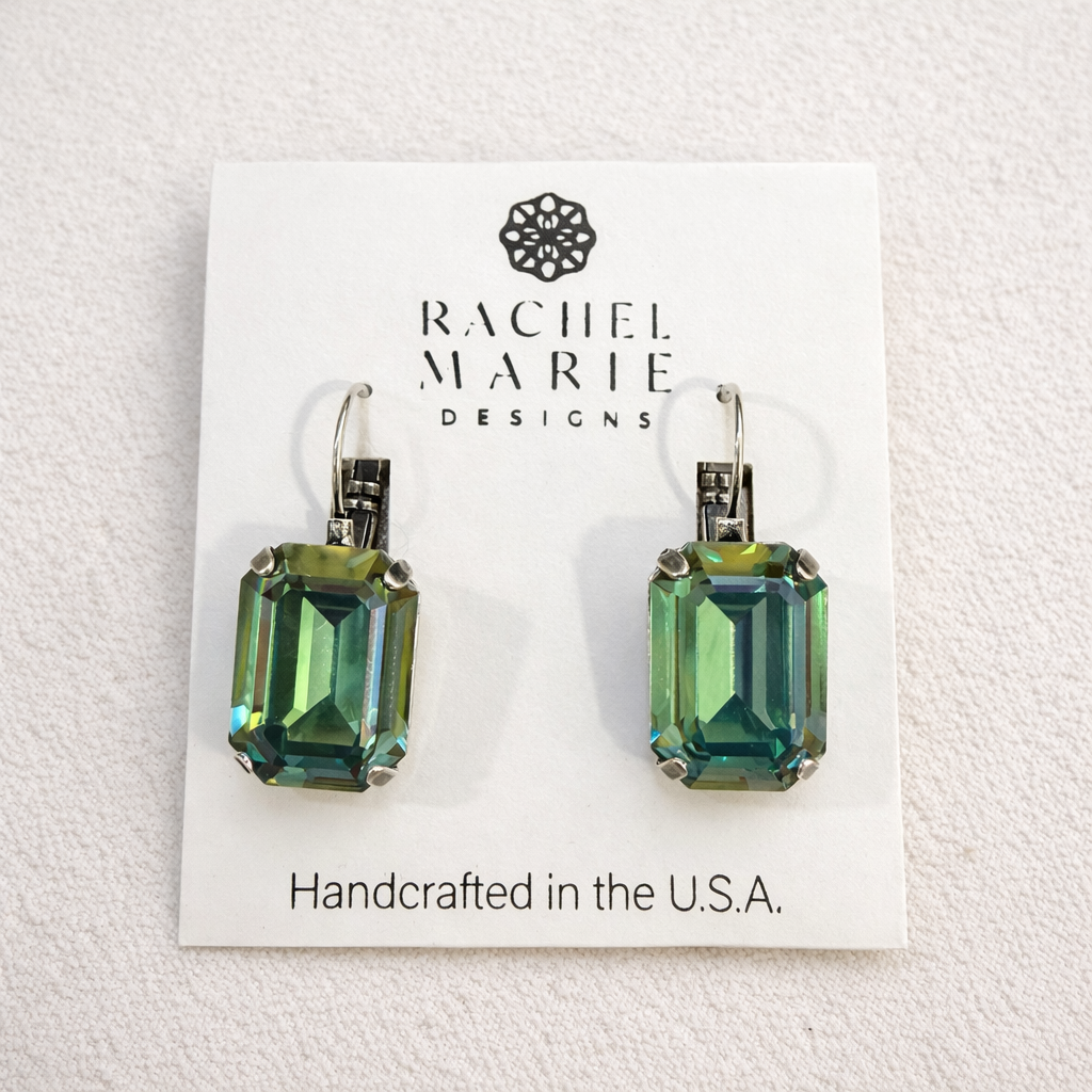 A boutique favorite! The Robin Earring is a stunning large stone drop earring. The total length is about 1.5" and dangles off of a leverback. It is pictured with the Roxy Necklace and Roxy Bracelet.