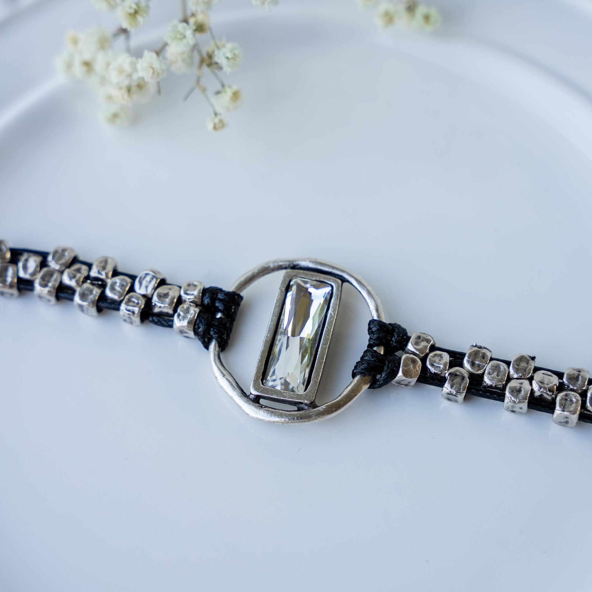 The TRADEWINDS BRACELET brings together an organic loop and a dazzling baguette center, all woven into a nylon-coated cord that’s both durable and effortlessly stylish. Its blend of natural textures with a worn, distressed feel gives it a unique sparkle that’s perfect for adding some playful charm to any outfit. Whether you’re headed out for a casual day or a night on the town, this bracelet captures the carefree, breezy spirit of adventure with every wear. It’s where rugged meets radiant — get ready to brighten your look with a twist of seaside fun!